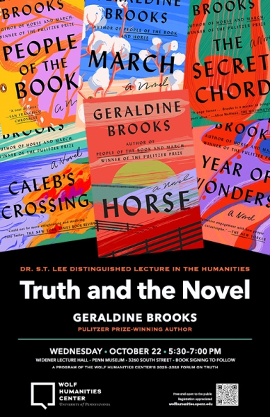 Fiction is the lie through which we tell the truth, said Albert Camus. Geraldine Brooks spent half her life as a journalist, running after the truth in difficult places where despots and warlords were desperate to obfuscate. Later she turned to fiction, but her novels always hew as closely as possible to historical truth. In this talk, she will discuss her process as a novelist and how it is informed by the tool kit she acquired as a foreign corespondent covering conflicts in the Mideast, Africa, and the Balkans.